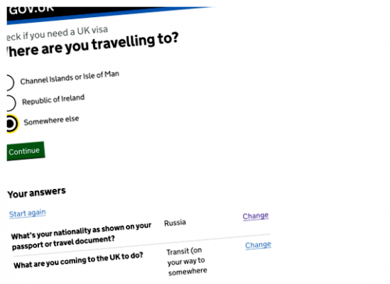 Если у вас нет валидной визы для указанных стран или если вы являетесь гражданином страны, входящей в Европейское союз, Европейскую экономическую зону или Швейцарию, то для транзита через Великобританию вам потребуется транзитная виза или стандартная виза, в зависимости от вашего пункта назначения.