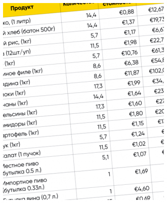 Каковы в основном расходы на питание в Испании?